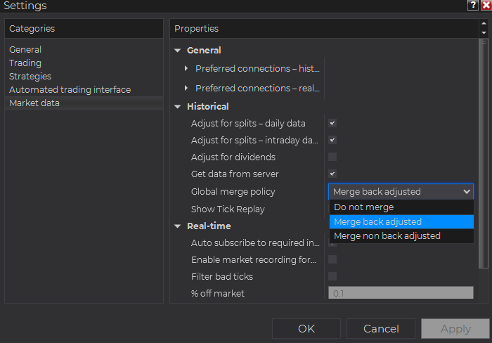 You can control this in Tools -> Settings -> Market Data -> Global merge policy