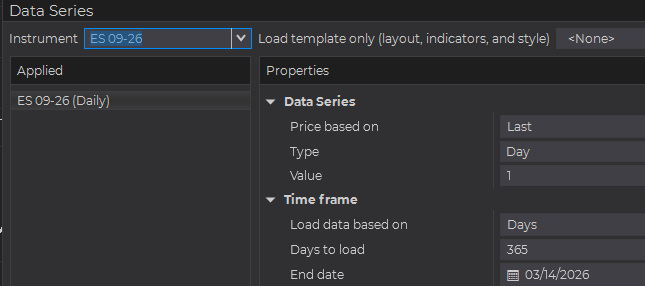 The NinjaTrader desktop interface is biased toward the front month.