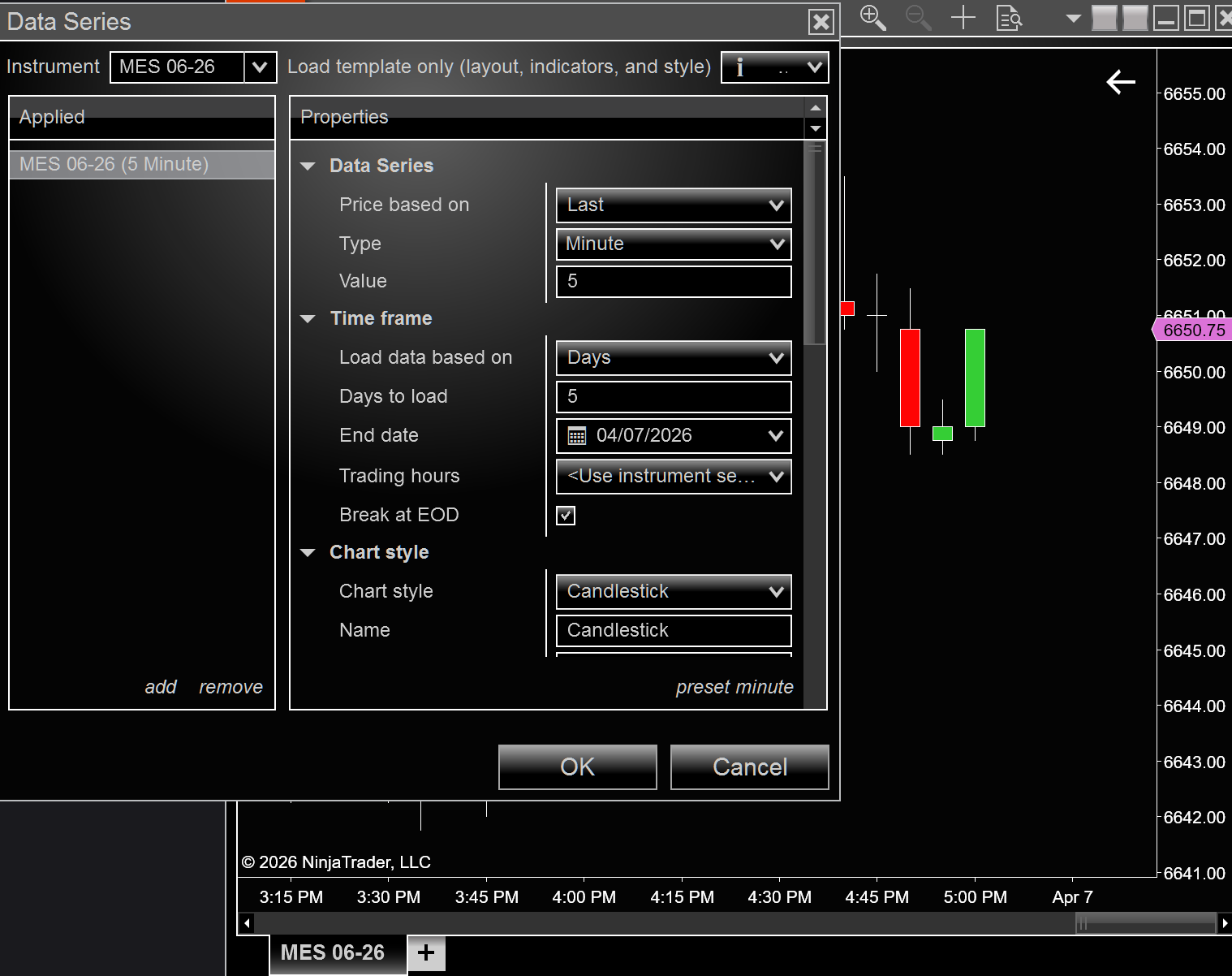 Regardless of what I choose for trading hours in the Data Series i.e. use instrument settings, CME US Index Futures ETH, Default 24 x 7 when I click ok, the chart that opens has defaulted to RTH. Open Data Series and sure enough it shows RTH. Any ideas things to try appreciated.