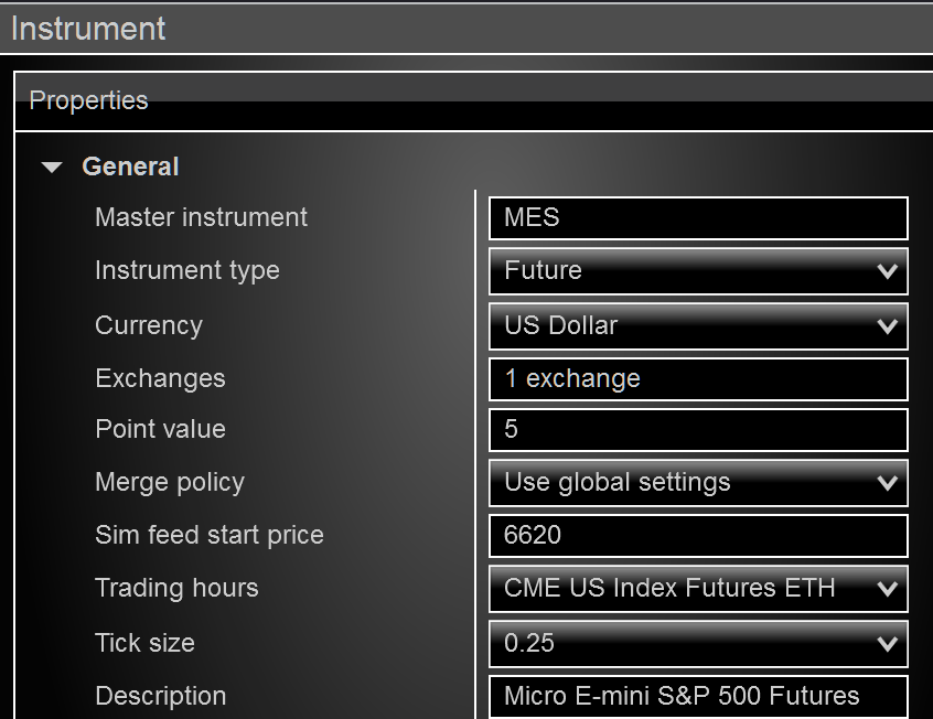 Went into tools-instruments and looked there and it is set to CME US Index Futures. Tried changing that to 24 x 7 just to see if it changed anything but it did not so put it back like it was.
