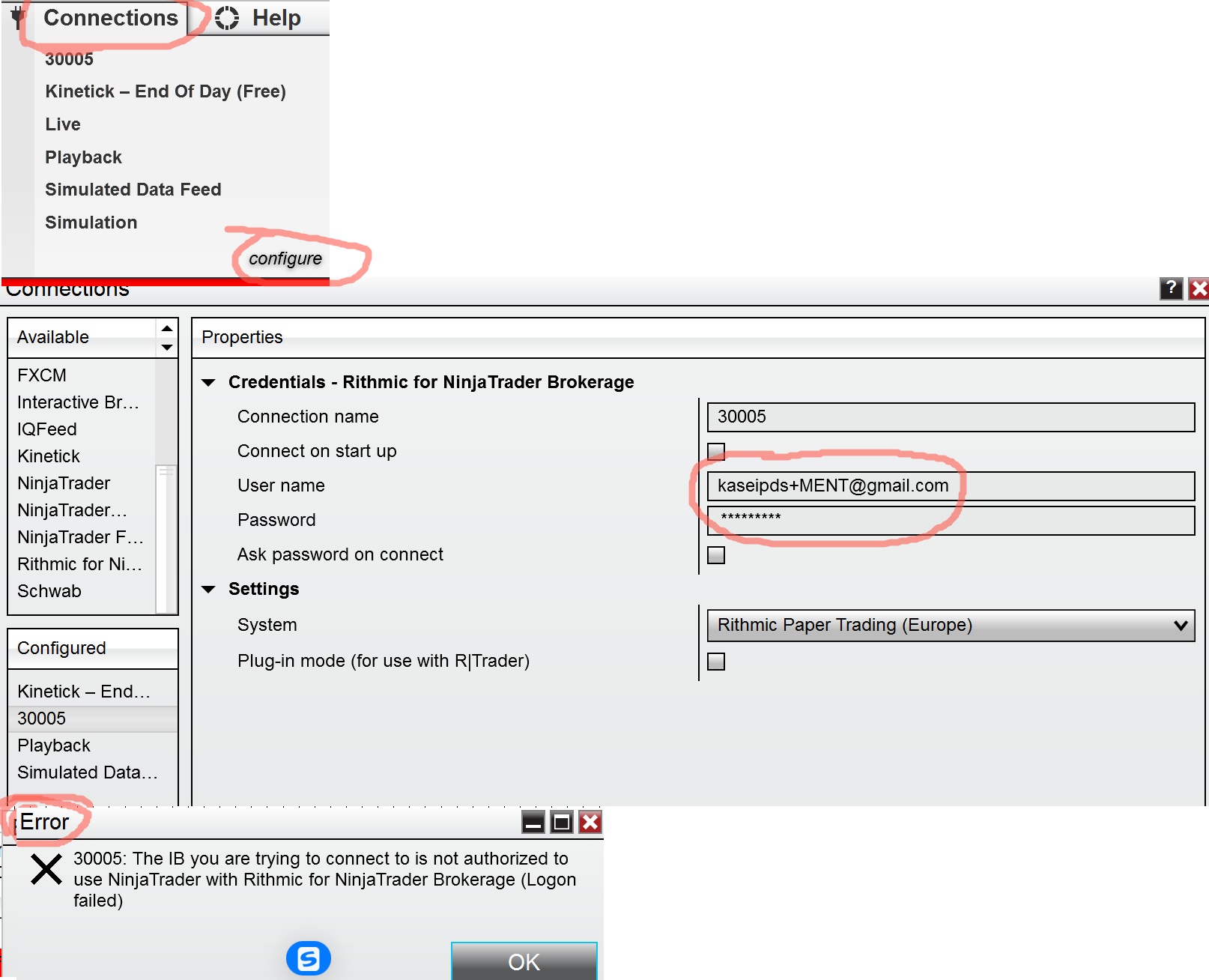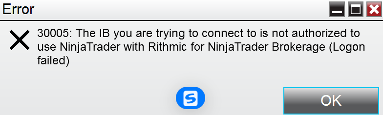 I got the error: “The IB you are trying to connect to is not authorized to use NinjaTrader wih Rithmic for NinjaTrader Brokerage”(suppose there had been no typos in credentials as they were copied exactly and worked on Rithmic’s platform).
