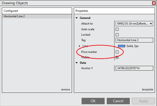 Feature #24850 is supposed to show price labels for horizontal lines. How do I enable it?