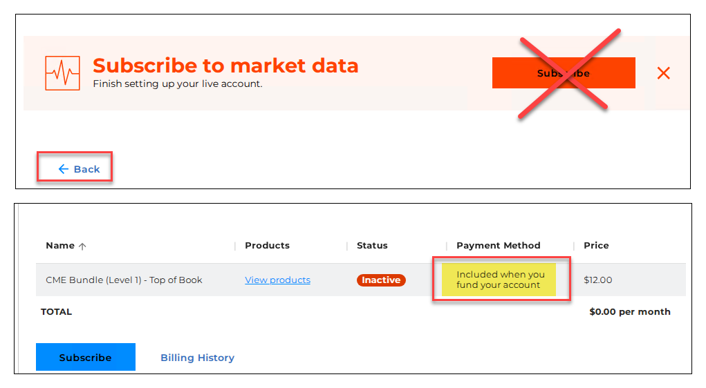 Yeah, so I have to “fund” the account is the only way it appears. The “Subscribe” button is misleading and not where you click when NinjaTrader gives you the pop-up to subscribe.