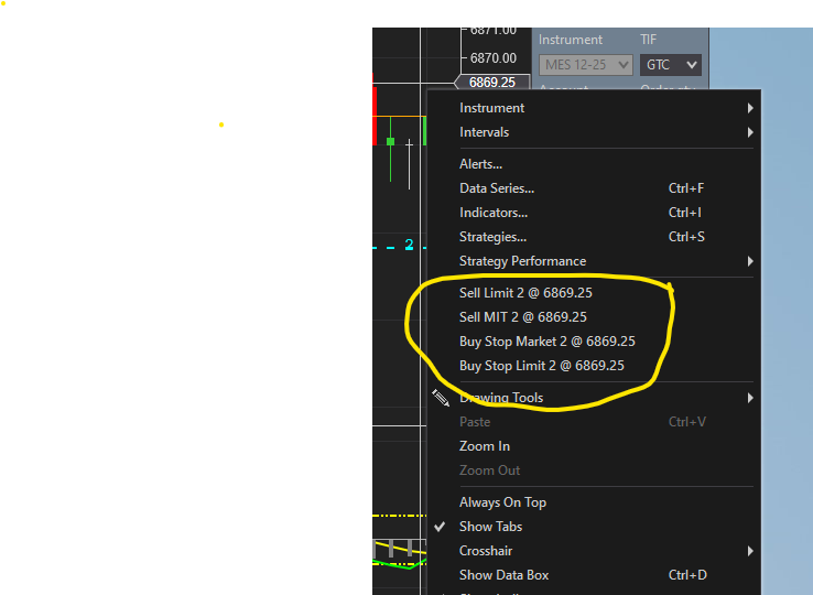 When the trend is down I want to place a buy order above the current price in anticipation the price will rise. However when right clicking on the chart only Sell orders are placeable. How can I place an order above the current price when the trend is down? Same question in reverse.