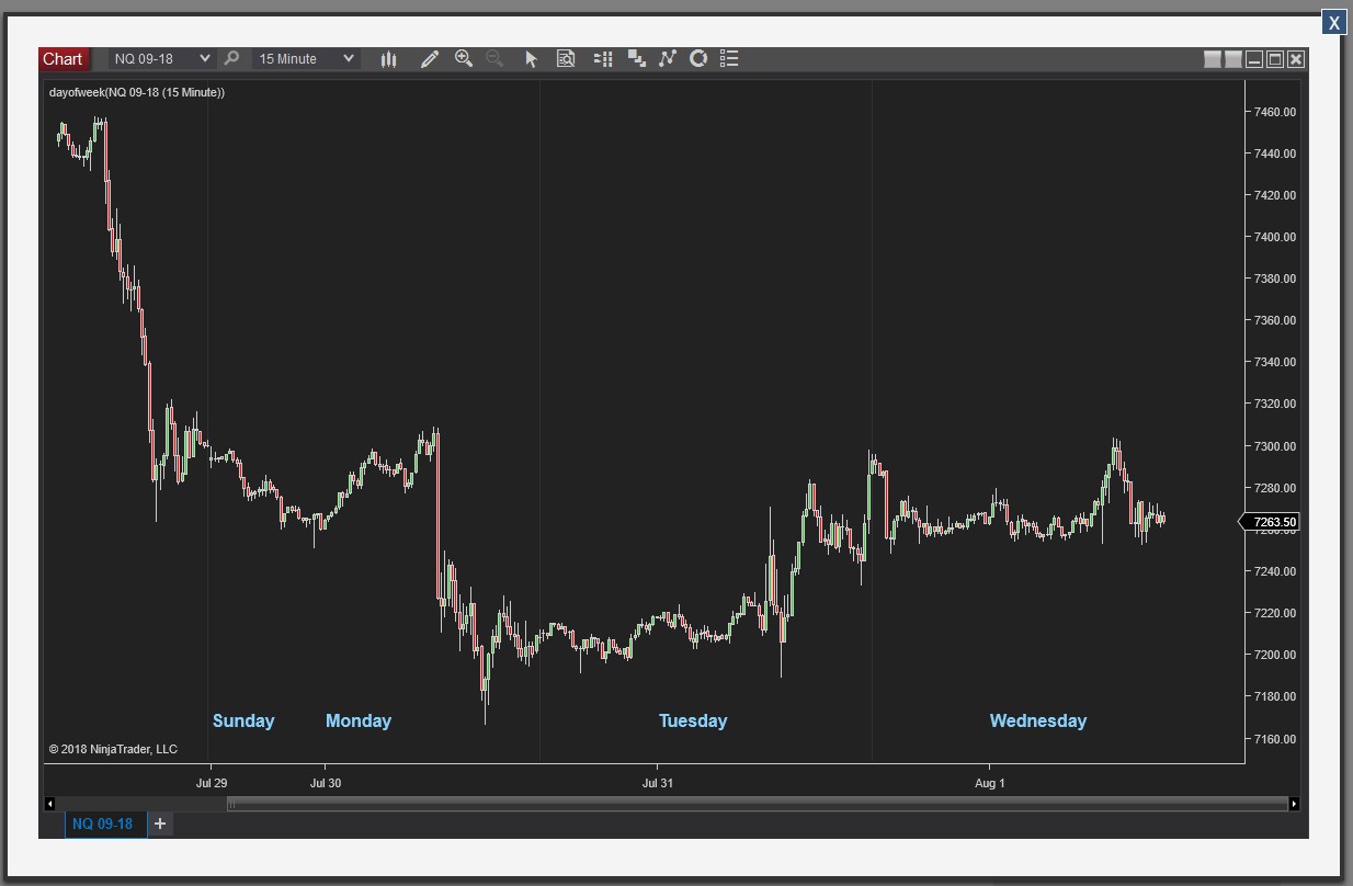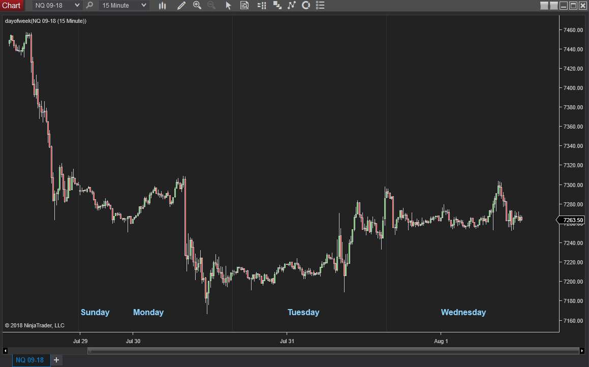 It would also be pretty simple to write an indicator that draw the day/date just above the timeline, you can also draw onto of the timeline itself but it’s a bit more advanced.