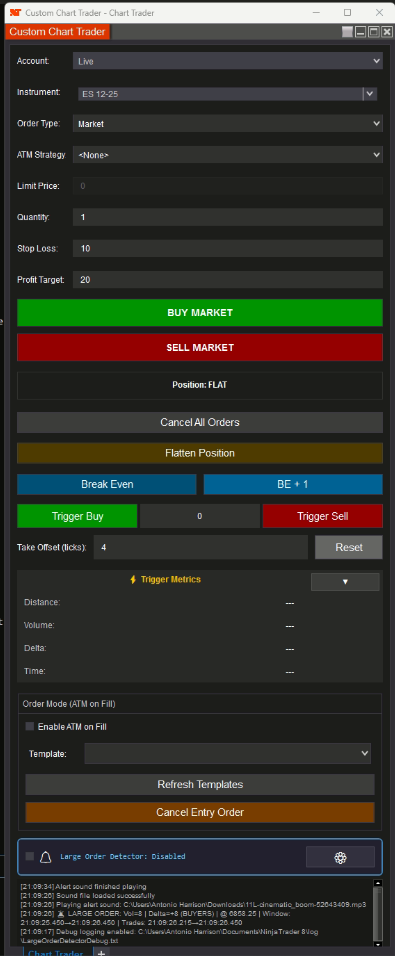 My custom Chart Trader — built it from scratch and finally running smooth (well, almost ).