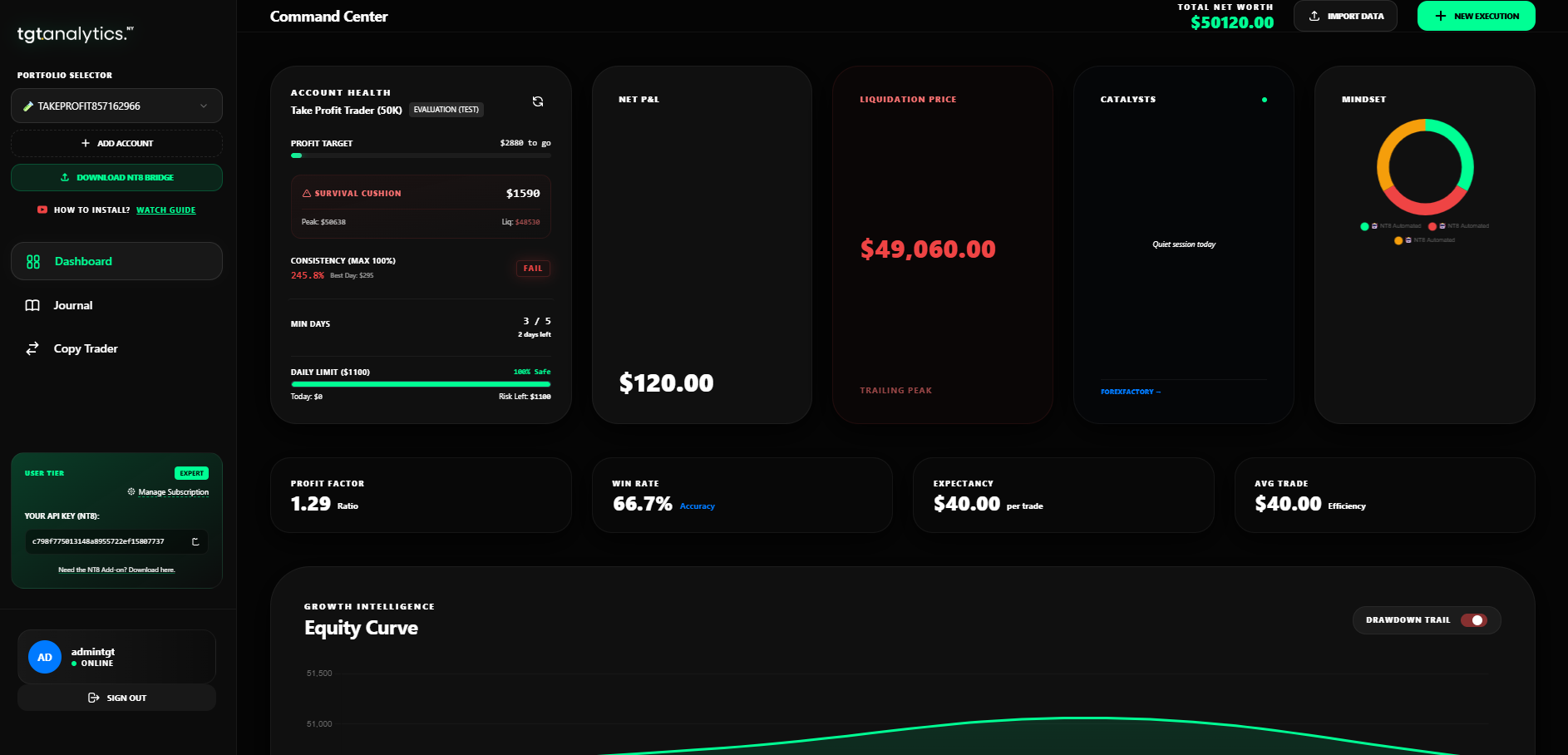 - Live Consistency: Real-time % tracker (Best Day vs Total PnL) so you know exactly when to stop trading to stay compliant.