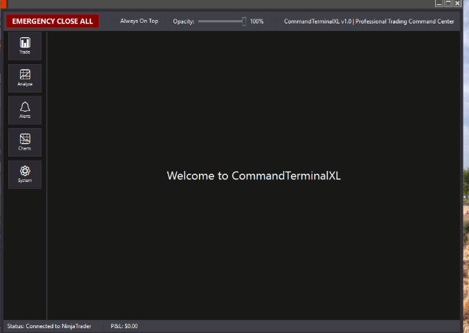 I’m building an Add-On for NinjaTrader 8 from scratch — it’s called Command Terminal XL — and I can’t figure out why the title bar refuses to display the window’s title. Instead of showing the window name, I only get a thin orange strip with no text.