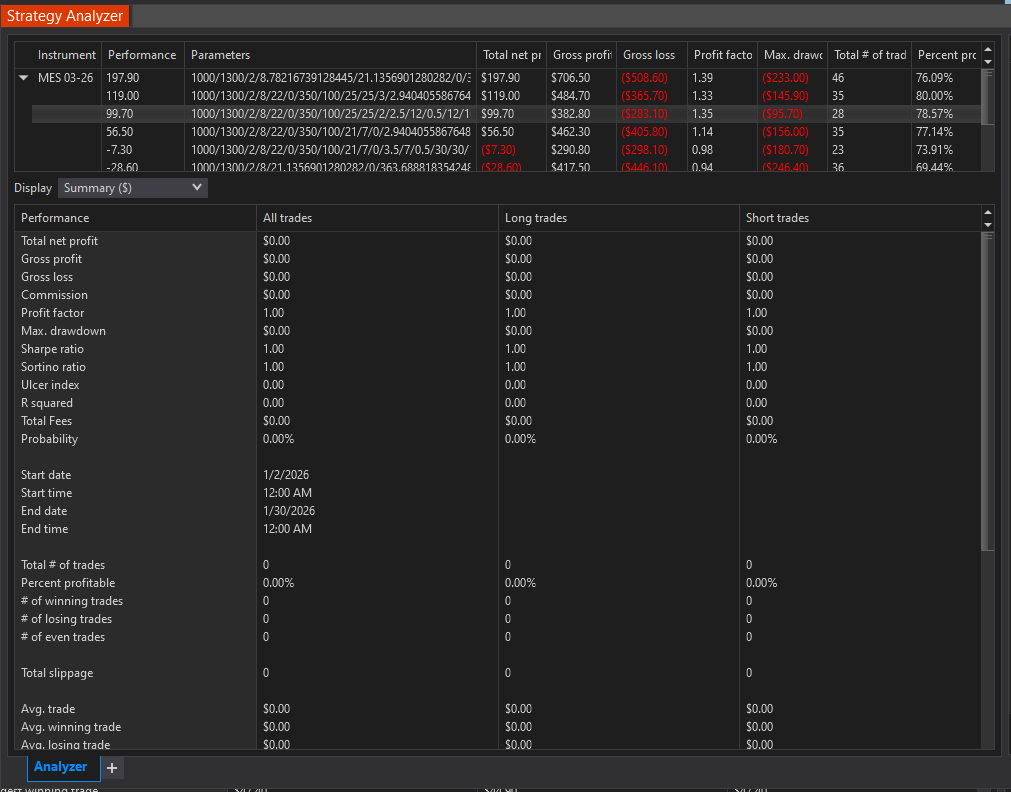 I ran the optimization and got a Summary result that were all 0s. Even though there are results that have Total net profit.