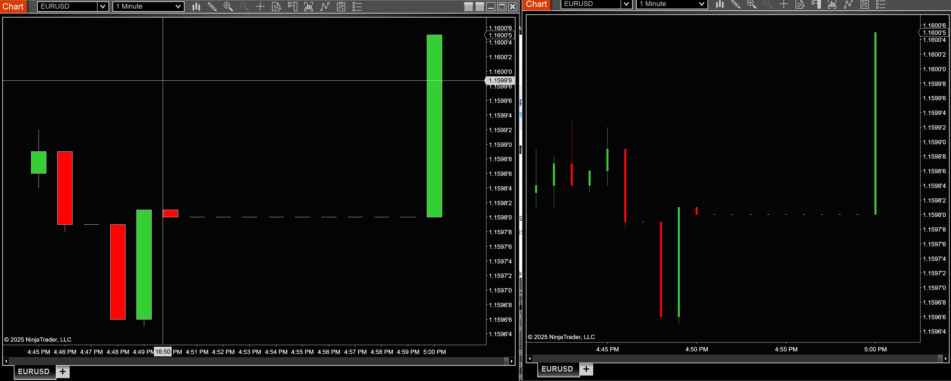 Have not changed any settings and when I open a new chart the bars are now thin and spread apart, as well the tick box for " Outline and wick match body" is selected. I have never had it like that. I have read about scaling and understand the things I can do to adjust them. Still I was wondering if anyone had run across this? Is it possible that something has been corrupted? I did a repair but those settings still return upon starting and creating a new chart. The bar width it shows is 3 I have 5 days of data loaded I will attach 2 images one that it creates now and one I have adjusted to look like they always have looked in the past.