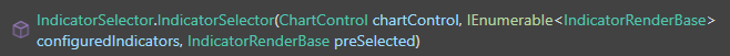 IndicatorSelector iSel = new IndicatorSelector(ChartControl, ChartControl.Indicators, this);