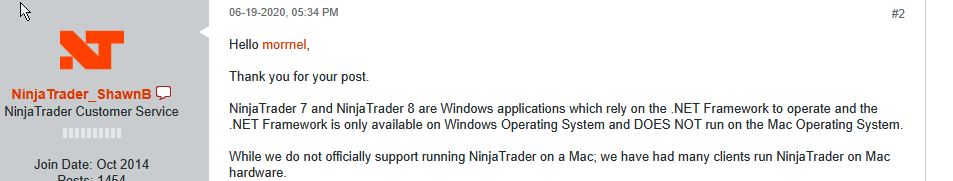 You cannot blame Ninjatrader for it, as they clearly stated that NT7/8 is a WINDOWS application. This is a Mac problem.
