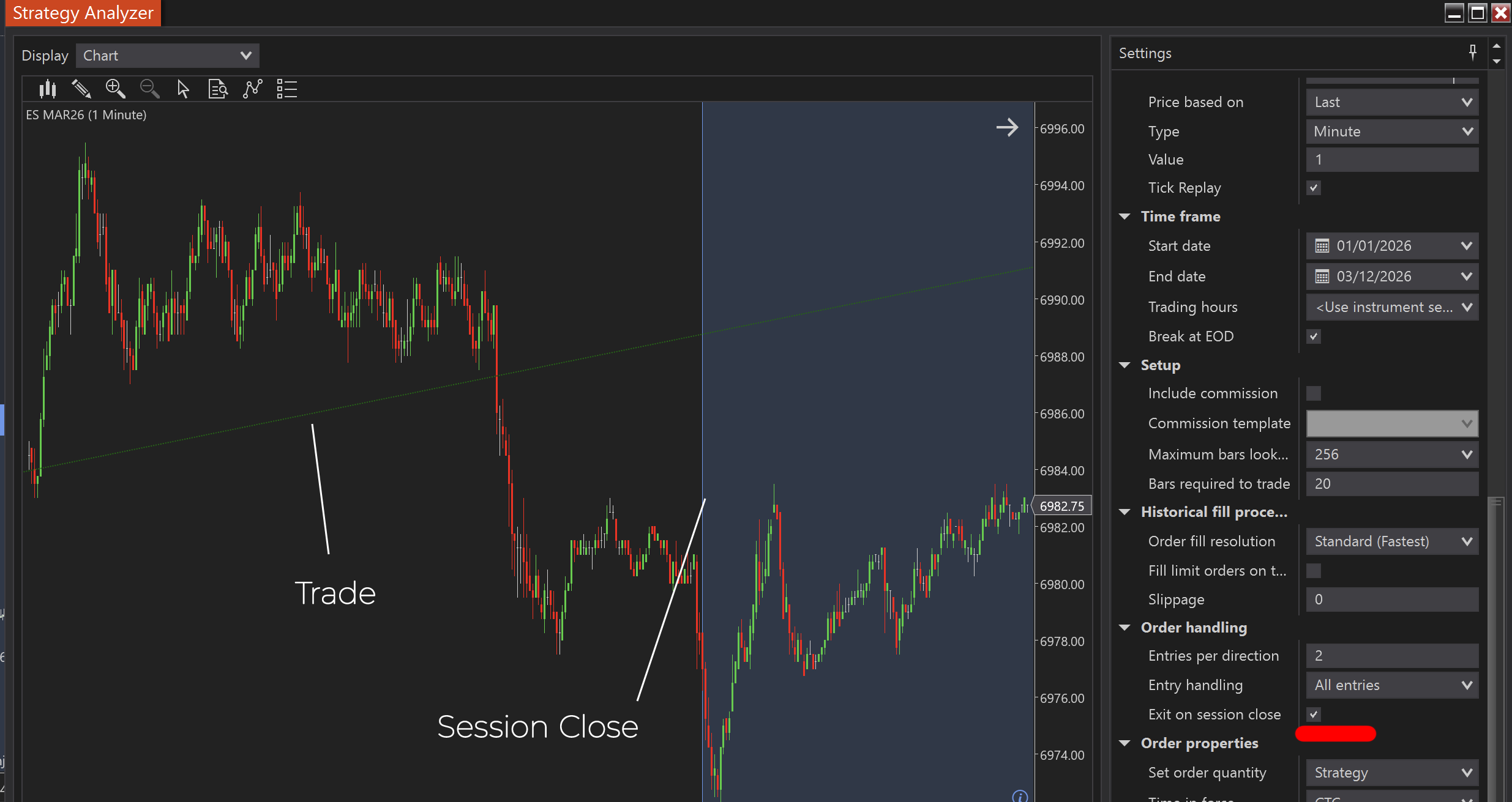 Tick Replay is not intended to function in NinjaScript strategy backtests and will not provide the same results as running a strategy on live data with Tick Replay enabled. For greater order-fill resolution in strategy backtests, you can use the High Fill Resolution in the Strategy Analyzer.
