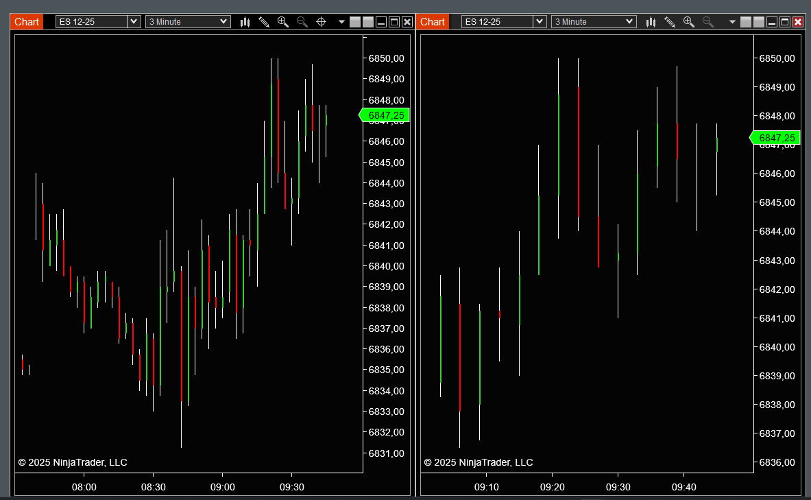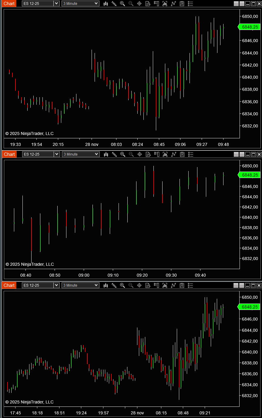 Three times the same 3 minute chart with three different densities. Three times a different scaling.