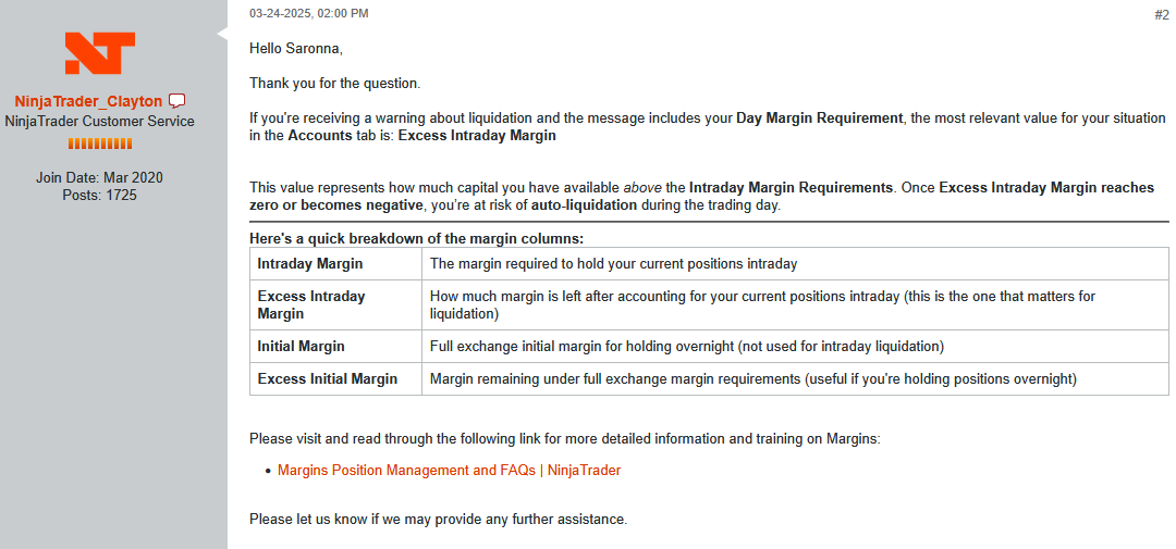 Yes I would like NinjaTrader to explain in painstaking detail for instance what Excess Intraday Margin is - all it ever shows me is the value of my entire account which is irrational according to the help pages. I have asked but the AI answer just refers me to the help page that i complained about.